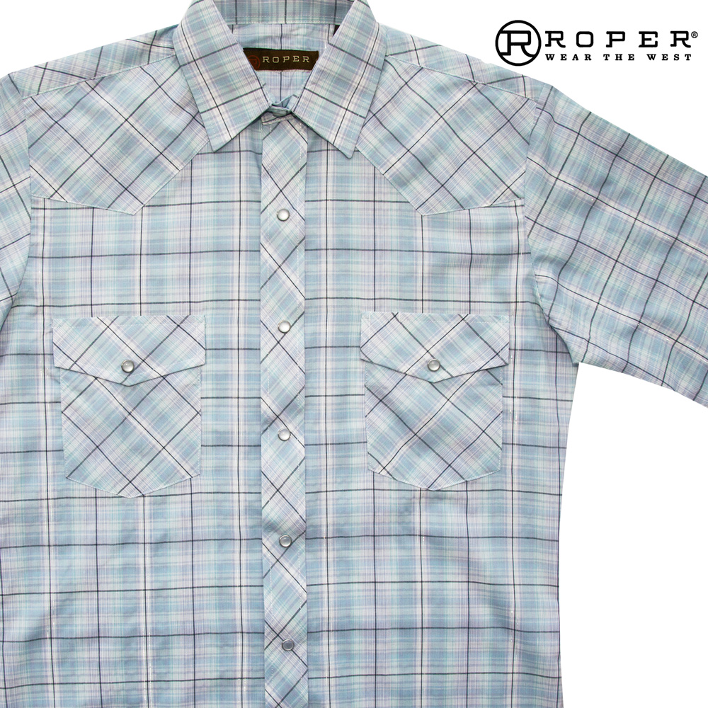ローパー スナップフロント ウエスタン シャツ(アクア/半袖)/Roper Short Sleeve Plaid Western Shirt(Aqua)