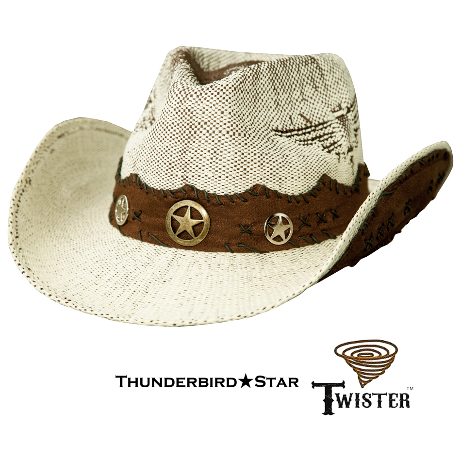 サンダーバード スター シェイパブルブリム ウエスタン カウボーイ ストローハット(ナチュラル・ブラウン)/Twister Thunderbird Star Straw Cowboy Hat(Natural) [BTCM23]