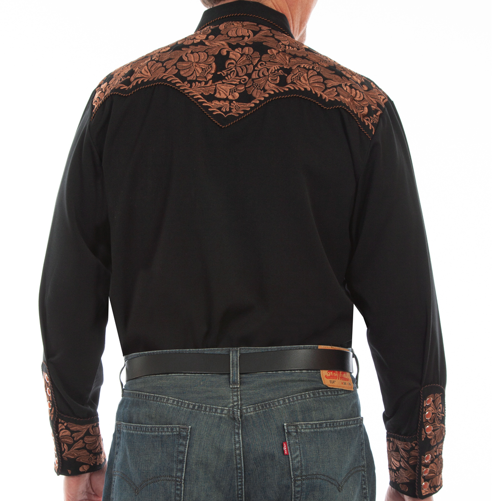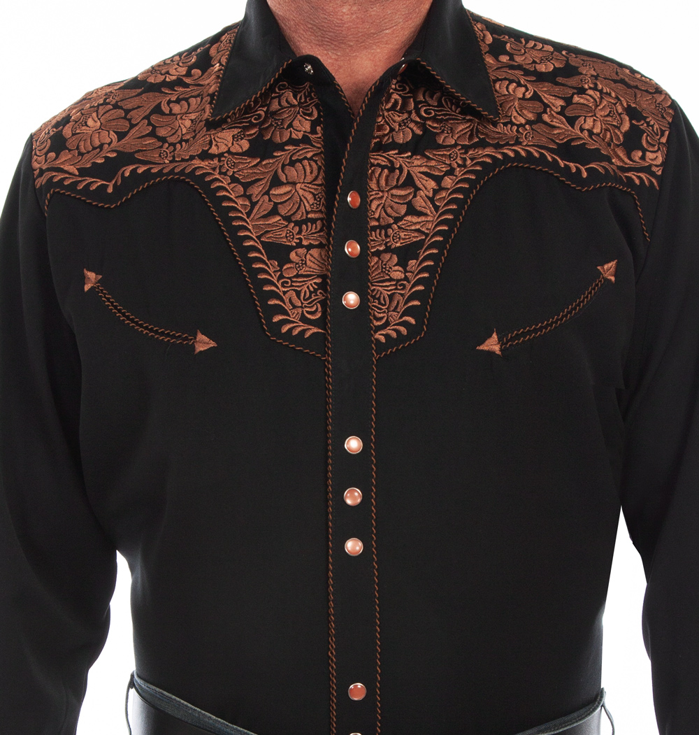 - > スカリー ウエスタン 刺繍シャツ(長袖/ブラック・ブラウン)/Scully Long Sleeve Embroidered Western Shirt (Men's)