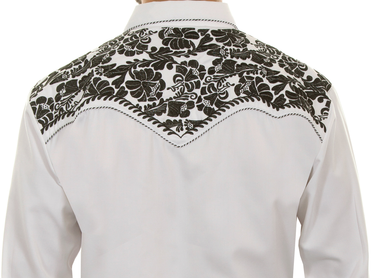 スカリー ウエスタン 刺繍シャツ(長袖/アイボリー・ブラック)S/Scully Long Sleeve Embroidered Western Shirt (Men's)