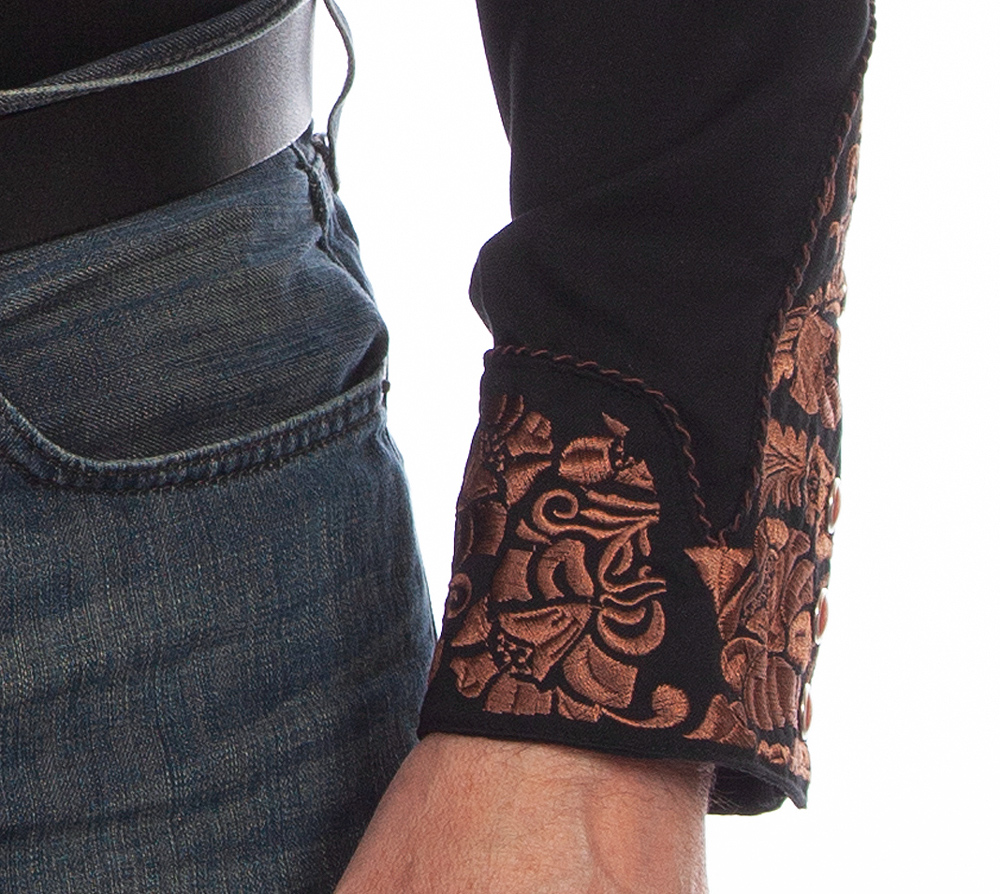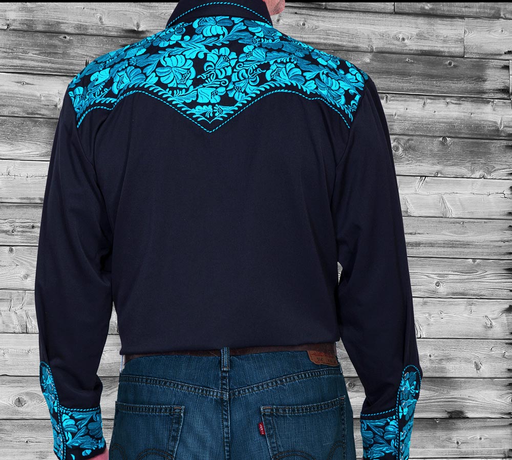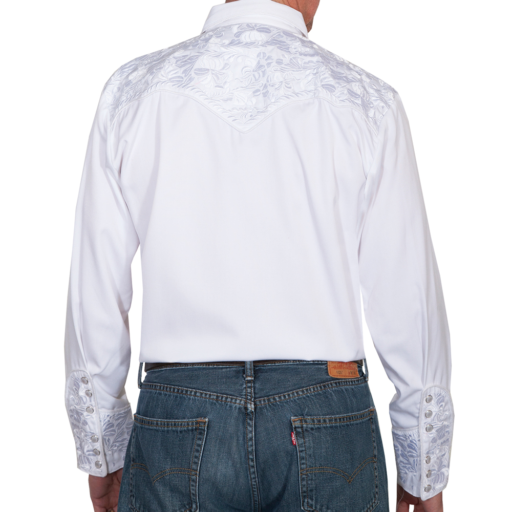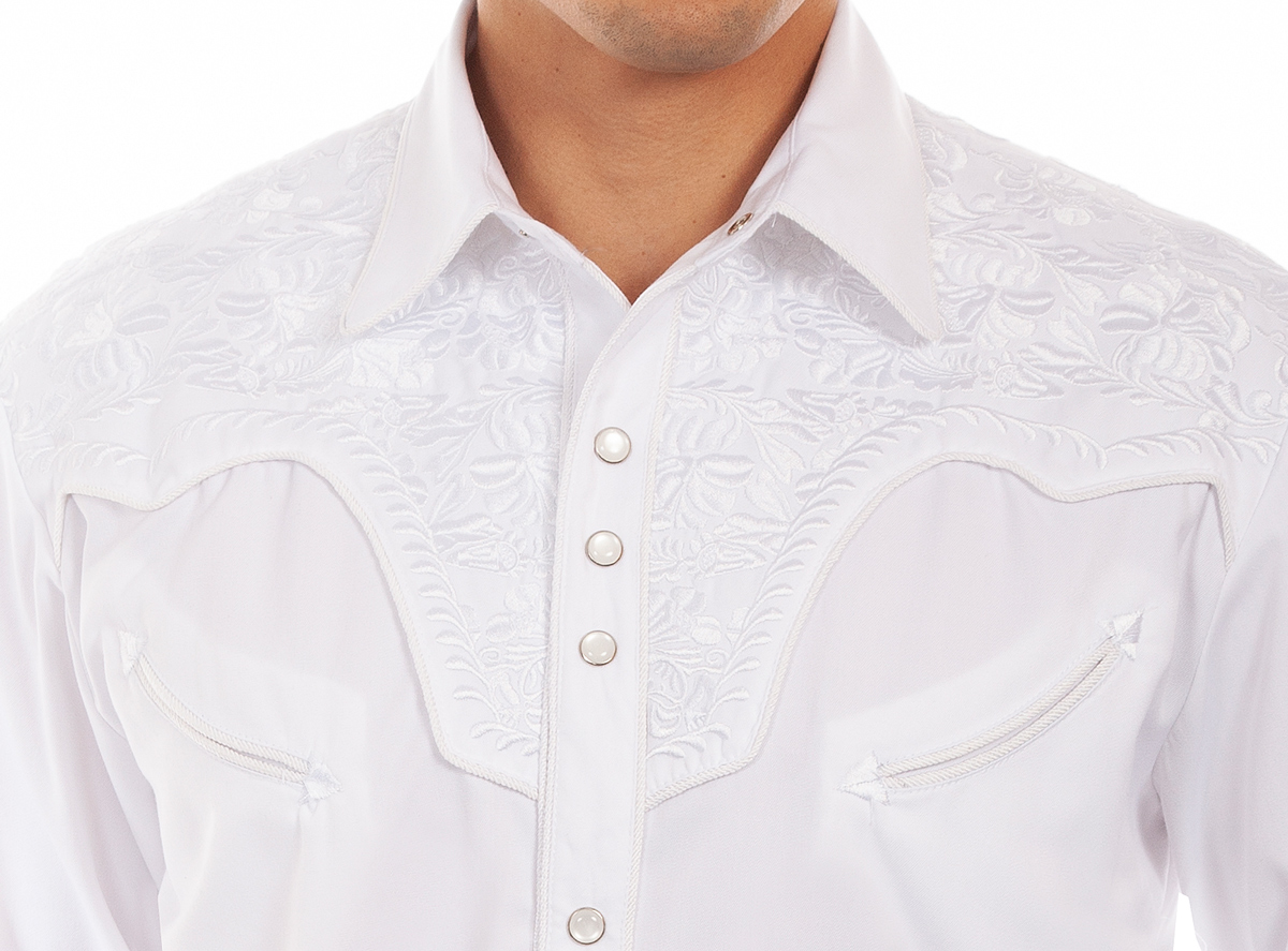 スカリー ウエスタン 刺繍 シャツ(長袖/ホワイト・ホワイト)S(身幅56cm)/Scully Long Sleeve Embroidered Western Shirt(Men's) [EBKM27]