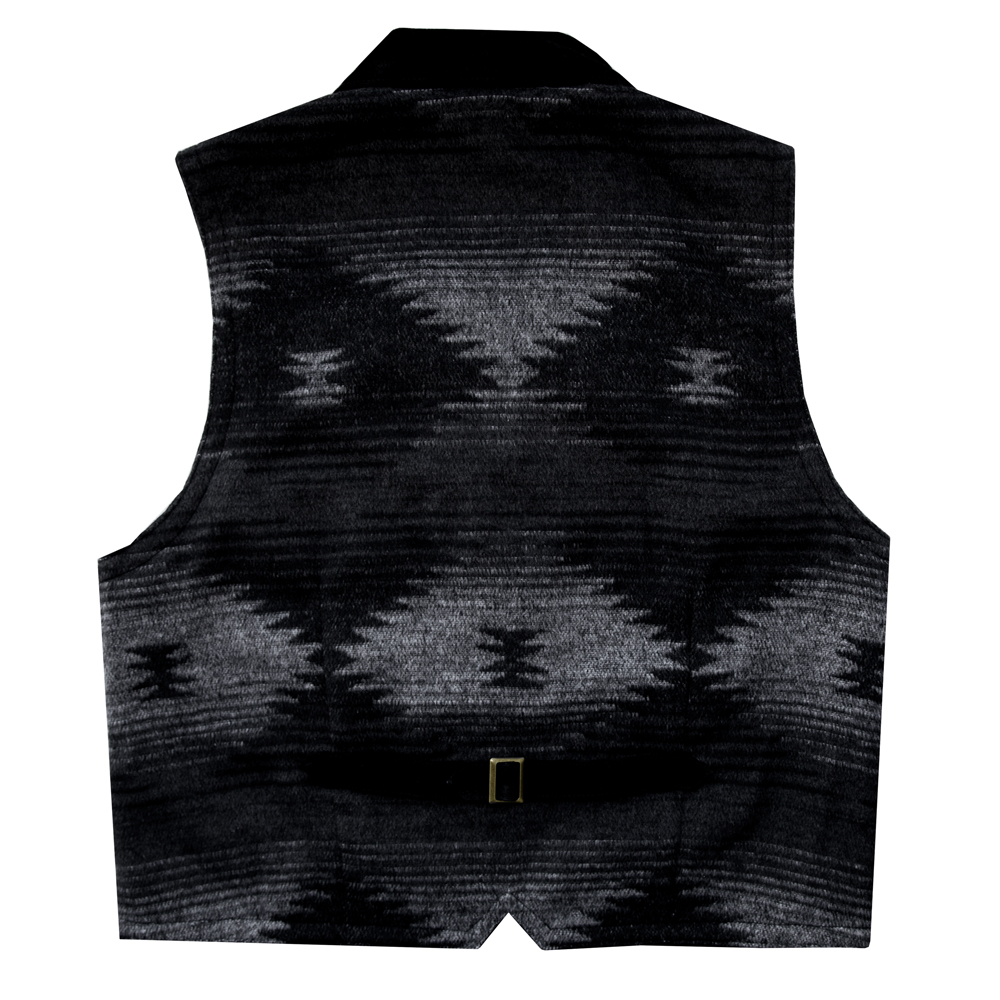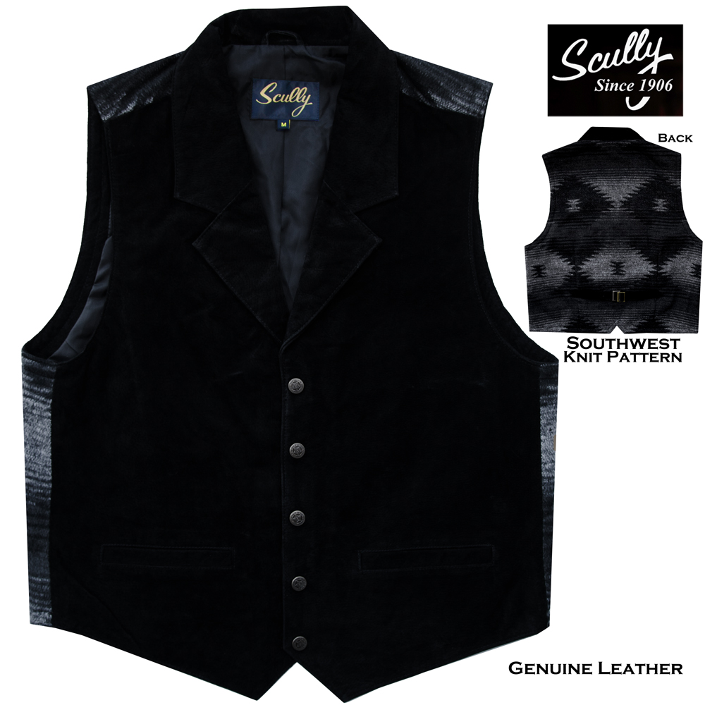 - > スカリー スナップフロント ブラックレザー&サウスウエストパターンバック ベスト(ブラック)/Scully Genuine Leather Southwest Knit Pattern Back Vest(Black)