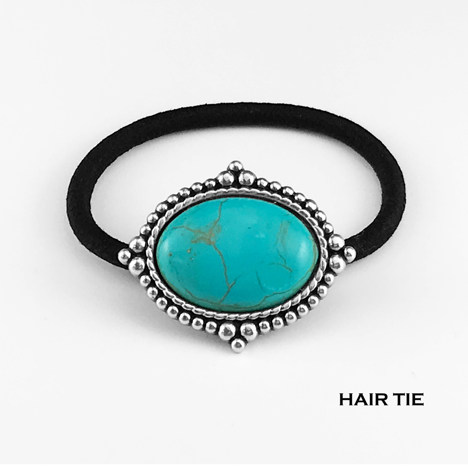 - > ヘアーゴム ヘアタイ ターコイズ・シルバー/Hair Tie