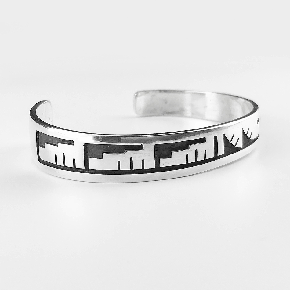 ホピ族 インディアンジュエリー ベンジャミン マンスフィールド作 ハンドメイド スターリングシルバー ブレスレット/Native American Hopi Benjamin Mansfield SterlingSilver Cuff Bracelet [PECM67]