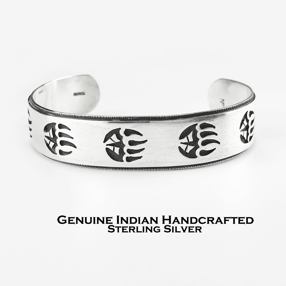 インディアンジュエリー ホピ族 ネイサンフレッドジュニア作 ハンドメイド スターリングシルバー ベアパウ ブレスレット/Native American Hopi Nathan Fred Jr. Sterling Silver Bear Paw Cuff Bracelet [HBCK37]