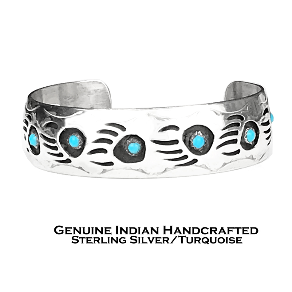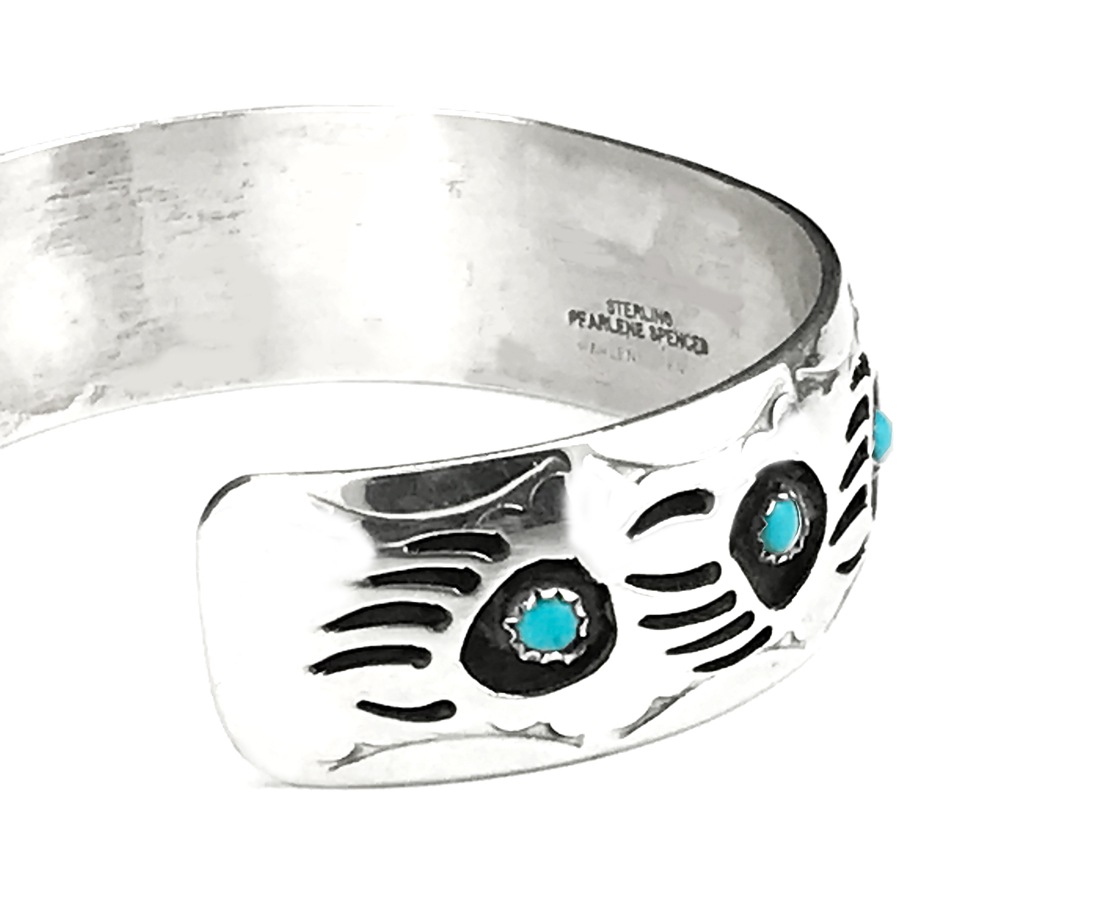 - > アメリカ インディアン ナバホ族 パーレーン スペンサー ハンドメイド 925 スターリングシルバー ターコイズ ベアパウ ブレスレット/Native American Navajo Pearlene Spencer Sterling Silver Turquoise Bear Paw Cuff Bracelet