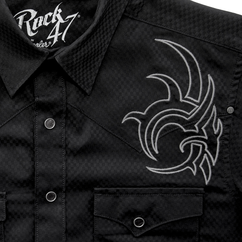 ラングラー 刺繍 ウエスタン シャツ(ブラック・長袖)S/Wrangler Rock 47 Embroidered Long Sleeve Western Shirt(Black)