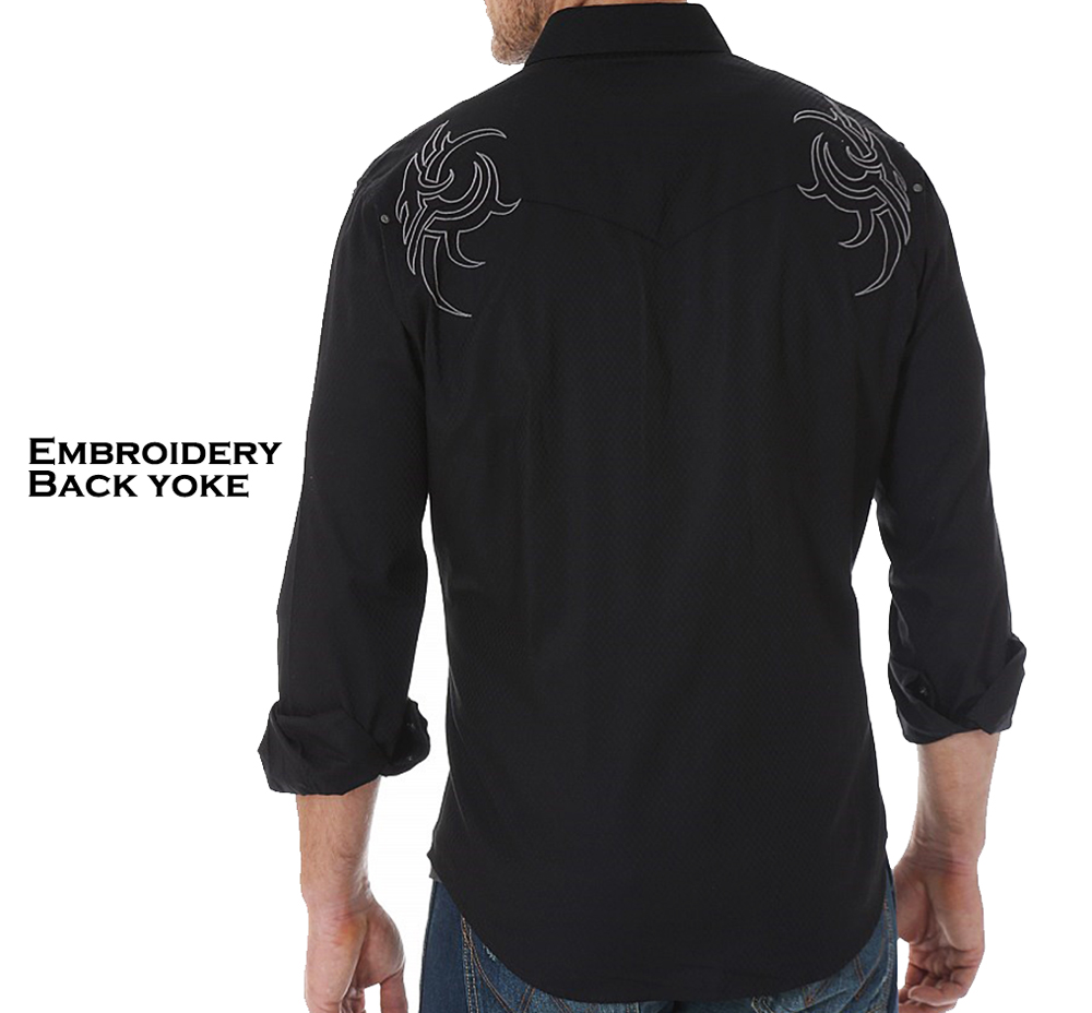 - > ラングラー 刺繍 ウエスタン シャツ(ブラック・長袖)S/Wrangler Rock 47 Embroidered Long Sleeve Western Shirt(Black)