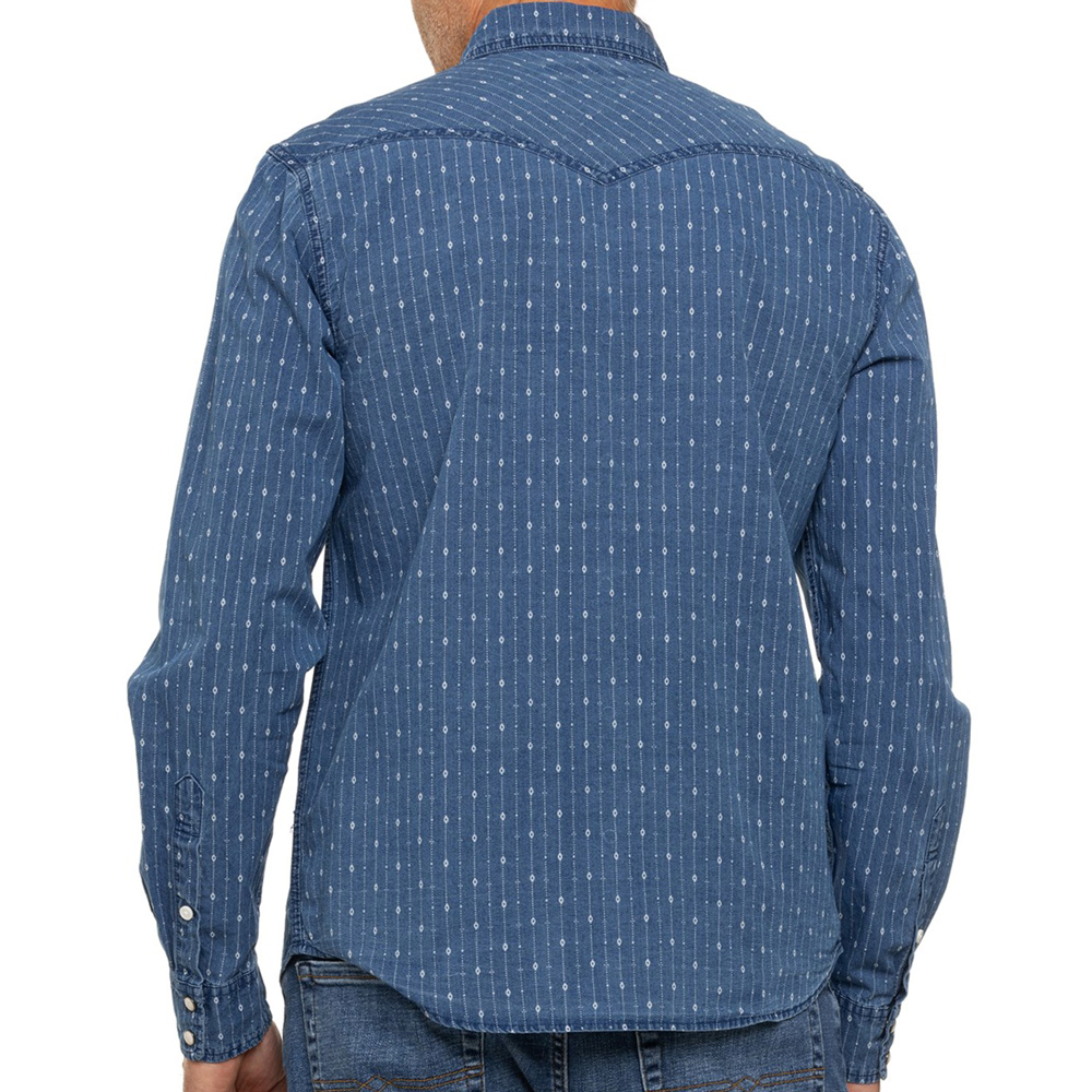 - > ラッキーブランド スナップフロント コットン インディゴ ウエスタンシャツ(長袖)S/Lucky Brand Indigo Stripe Long Sleeve Western Shirt