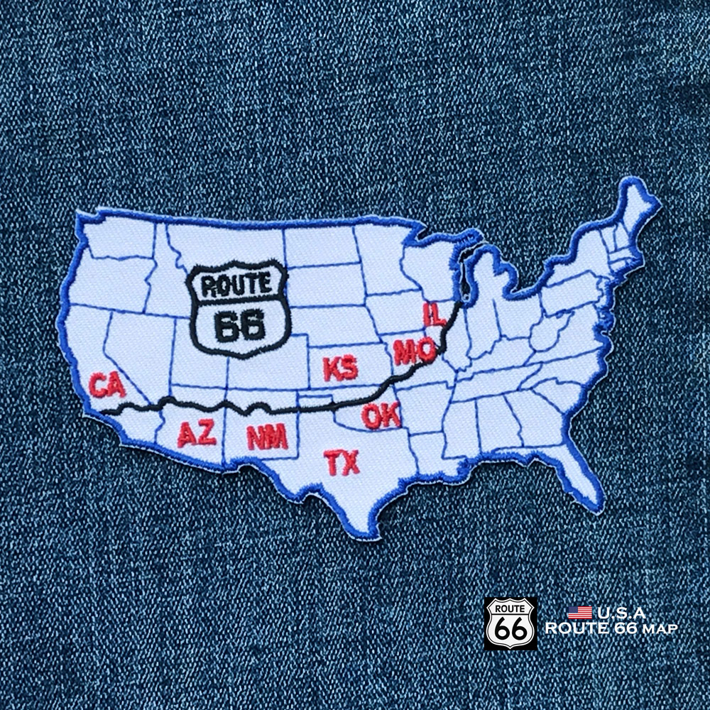 - > ワッペン ルート66 8州 ルートマップ アメリカ地図 カリフォルニア州ロサンゼルス〜イリノイ州シカゴ ホワイト/Patch Route 66 map
