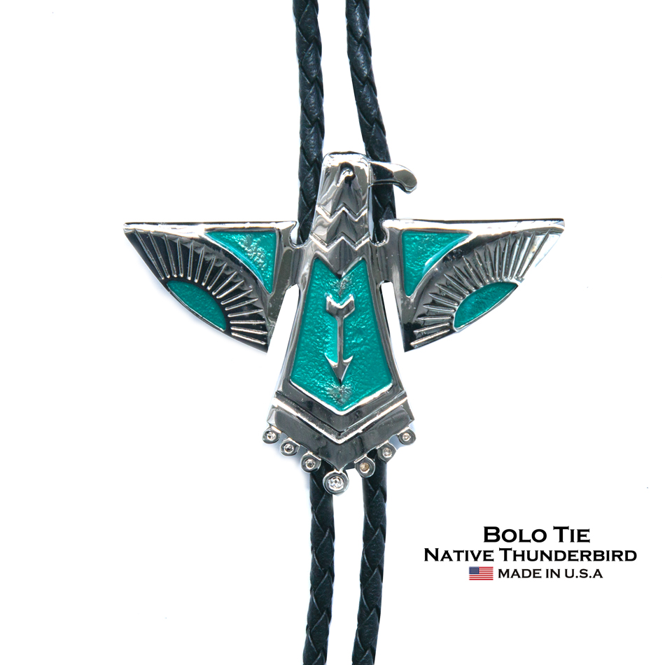 ボロタイ ネイティブ サンダーバード(シルバー・ターコイズ)/Western Bolo Tie Native Thunderbird [MELP27]