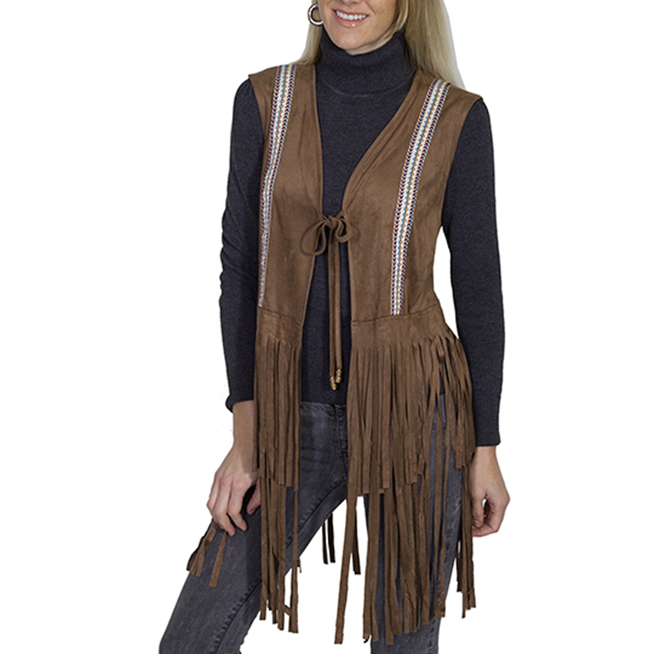 スカリー ロング フリンジ ベスト(タン)S/Scully Long Fringe Vest w/embroidered ribbon band Tan(Women's) [YUMP21]