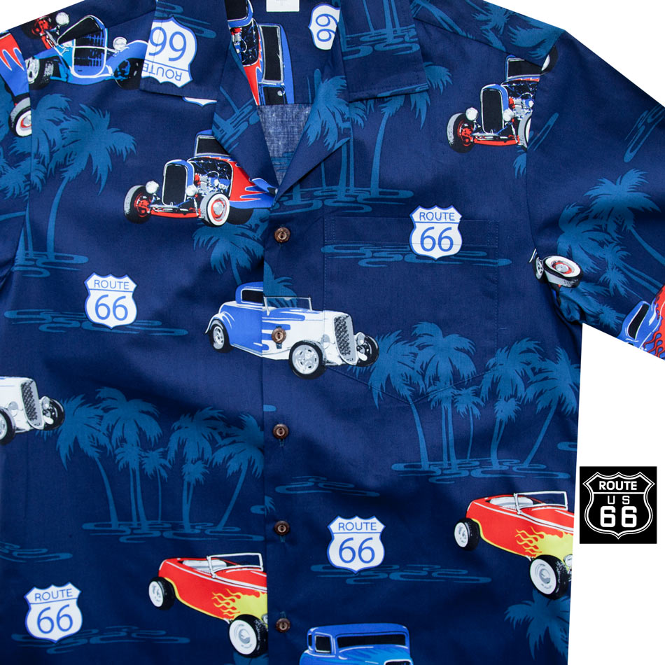 ルート66 アロハシャツ ハワイアンシャツ ネイビー/Aloha Shirt Route 66(Navy)