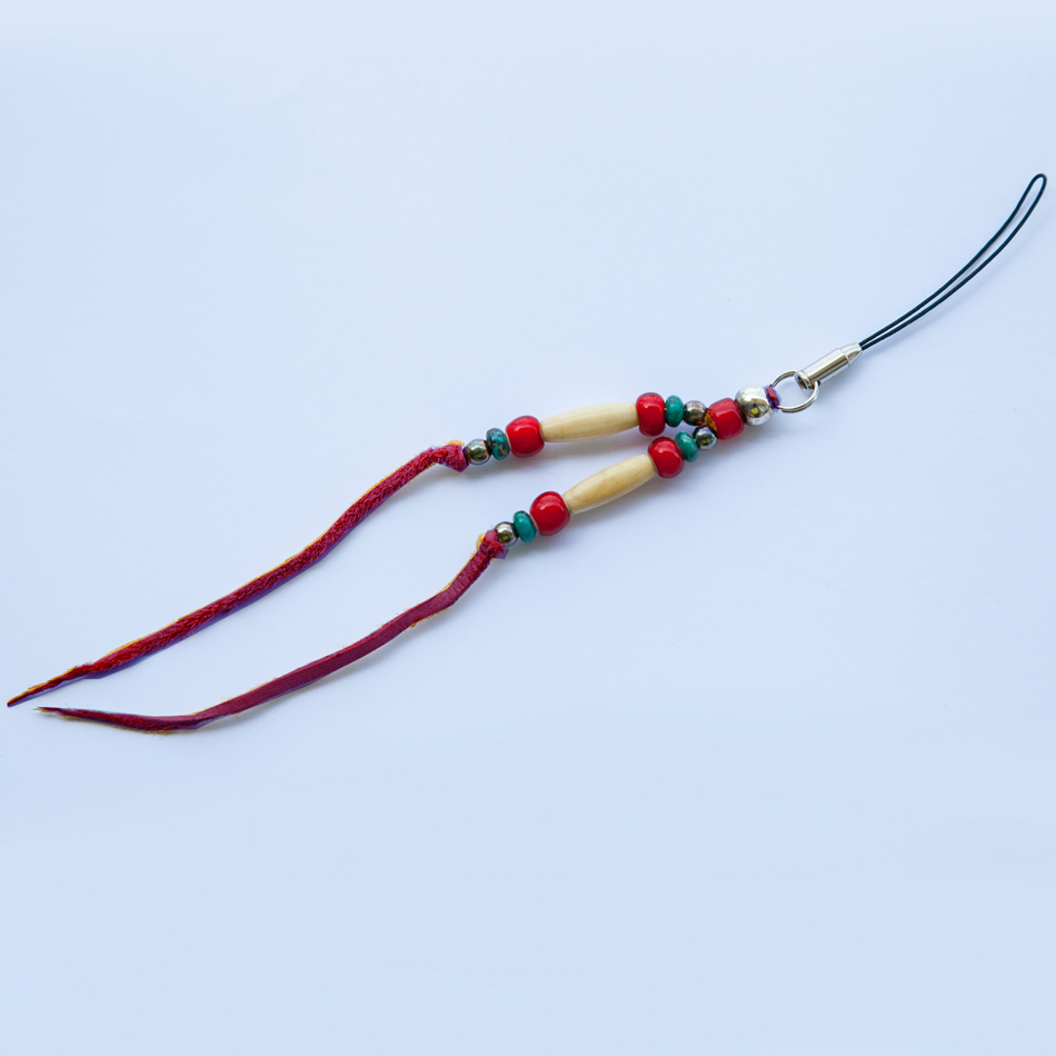- > ターコイズ&ディアスキン ビーズストラップ(レッド)/Strap