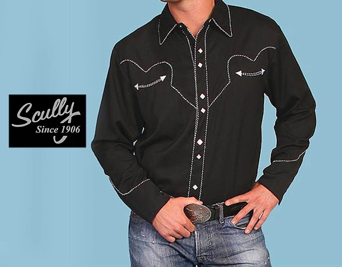 - > スカリー キャンディケイン パイピング ウエスタン シャツ(長袖/ブラック・ホワイト)/Scully Long Sleeve Western Shirt Black(Men's)
