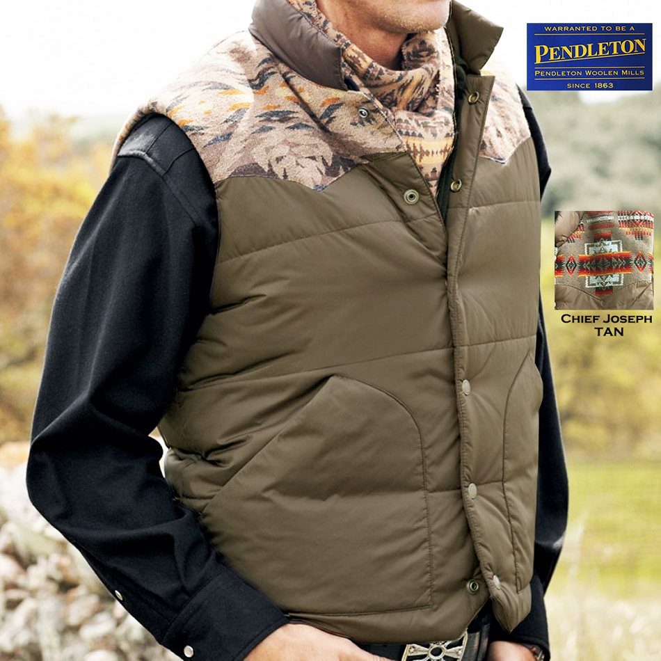 ペンドルトン ウエスタン ベスト(チーフジョセフ・タン)大きいサイズ 身幅66cm/Pendleton Vest(Tan Mini Chief Joseph) [FECT57]