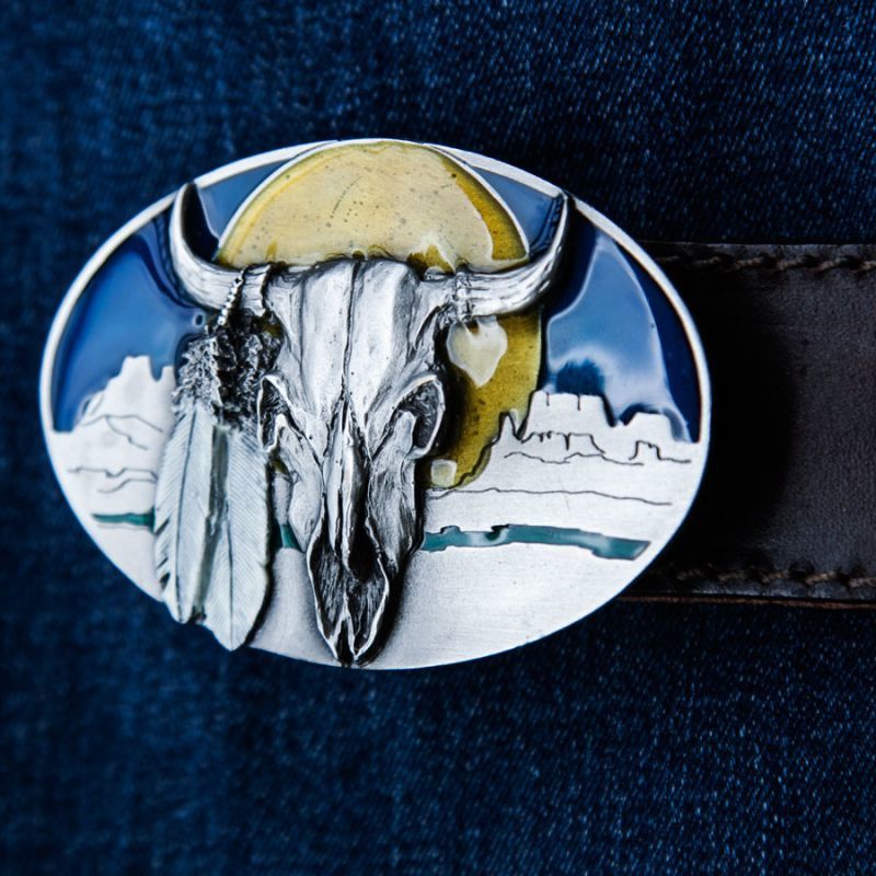 バッファロースカル&フェザー ベルト バックル/Buffalo Skull&Feathers Belt Buckle