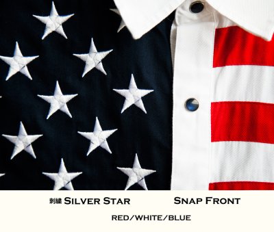 スカリー USA アメリカ国旗 星条旗 刺繍 シャツ(メンズ 半袖)/Scully Short Sleeve Western Shirt(Patriot Red/WHite/Blue) [SSRB38]