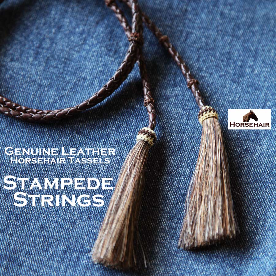 アメリカン ウエスタン レザー&ホースヘアータッセル スタンピード ストリングス ブラウン・ブラウン(ハット用あご紐)/Leather w/horse Hair Stampede Strings