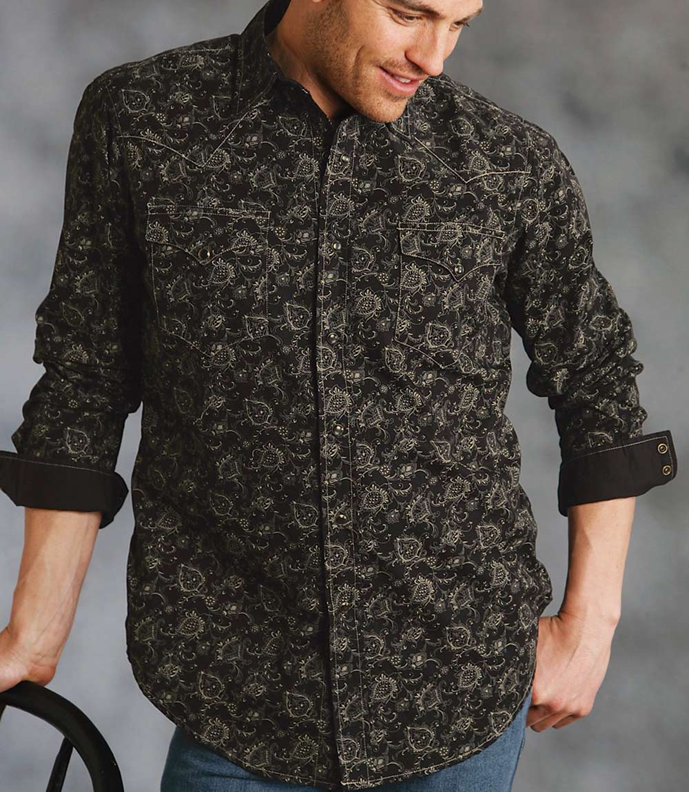 ローパー ウエスタンシャツ(ブラック・カーキ/長袖)/Roper Long Sleeve Western Shirt(Black)