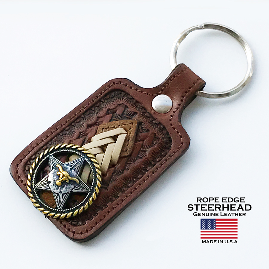 ウエスタン キーホルダー スクエア ブラウン(スター&ロープエッジ ステアーヘッド コンチョ・レザー)/Steerhead Western Concho Leather Key Fob(Square/Black)