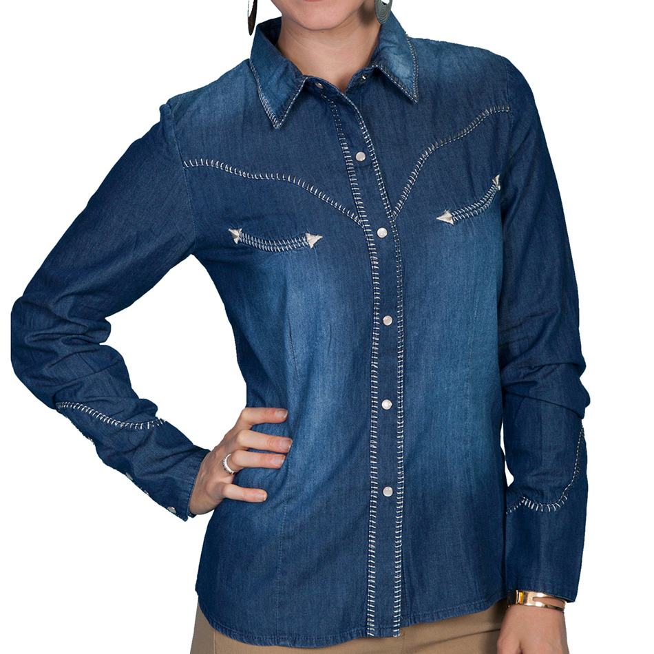 スカリー ウエスタン ウイップステッチ デニム シャツ(長袖/デニム)M/Scully Long Sleeve Western Shirt(Women's) [FCKH46]