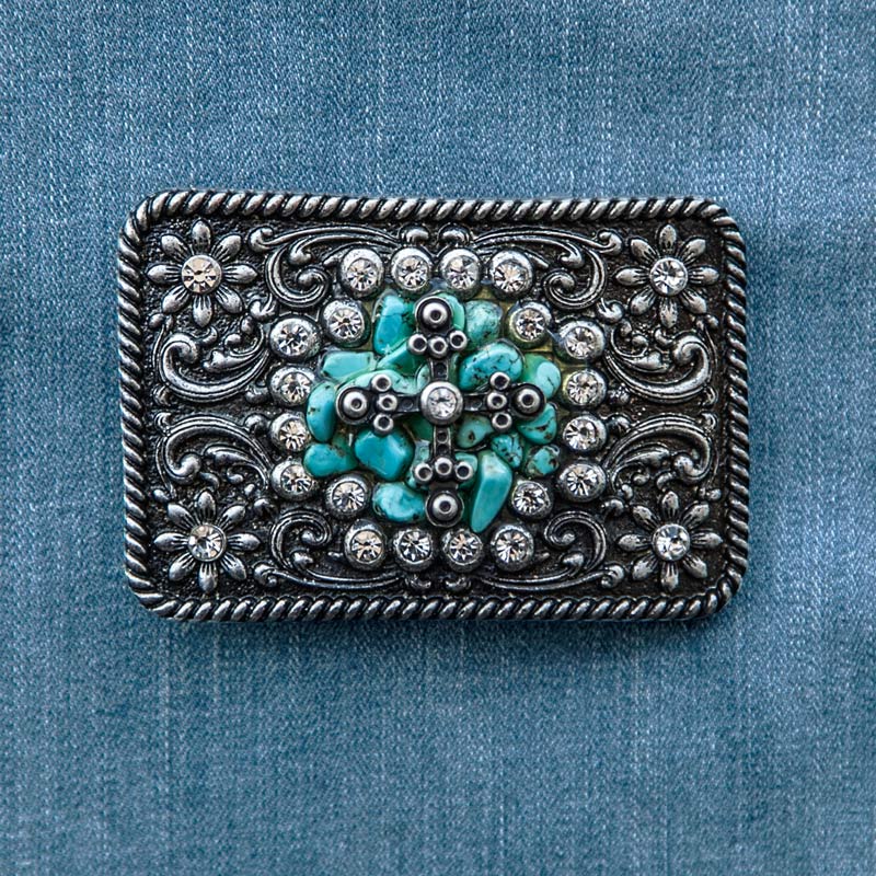 ノコナ ラインストーン&ターコイズ ベルト バックル(シルバー)/Nocona Belt Buckle