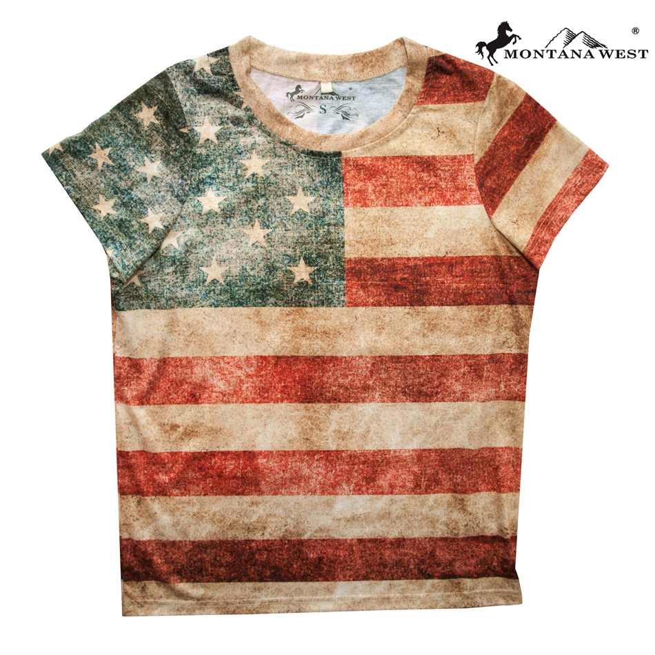 モンタナウエスト レディース ウエスタン 半袖Tシャツ(星条旗)/Montana West American Flag Short Sleeve T-shirt(Women's) [WPAT79]