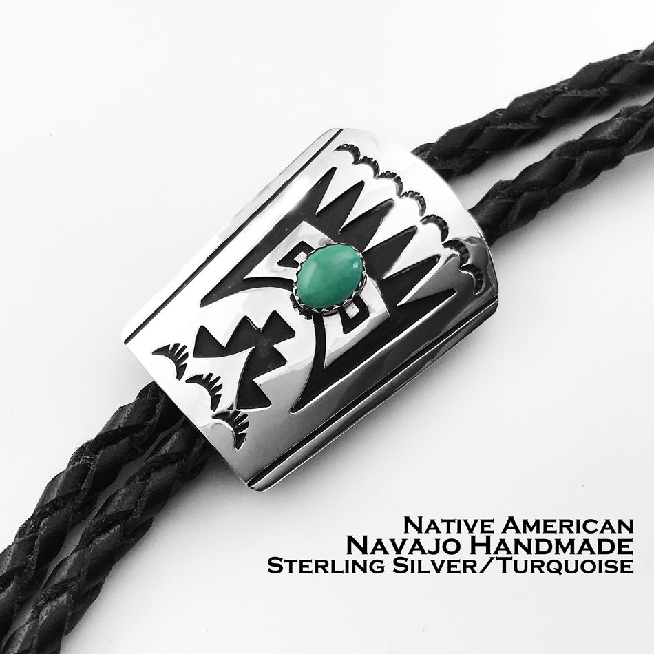 - > ネイティブアメリカン ナバホ族 シルバー&ターコイズ ハンドメイド ボロタイ/Navajo Sterling Silver&Turquoise Bolo Tie