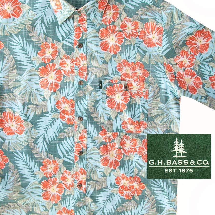 ジーエイチバス 半袖 シャンブレー シャツ(グリーンシーパイン・ハイビスカス)/GH Bass & Co.Short Sleeve Chambray Shirt(Green Sea Pine/Hibiscus) [KSBA49]