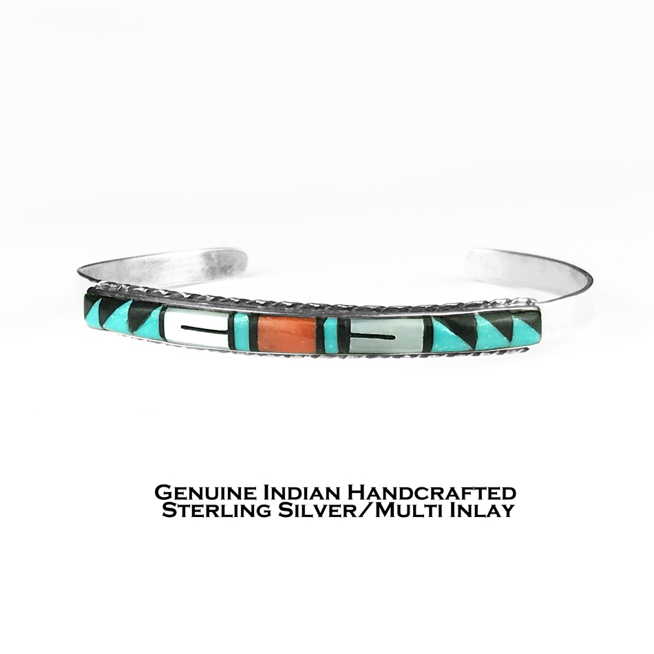 - > ズニ スターリングシルバー マルチ インレイ ハンドメイド ブレスレット/Zuni Sterling Silver Multi Inlay Bracelet