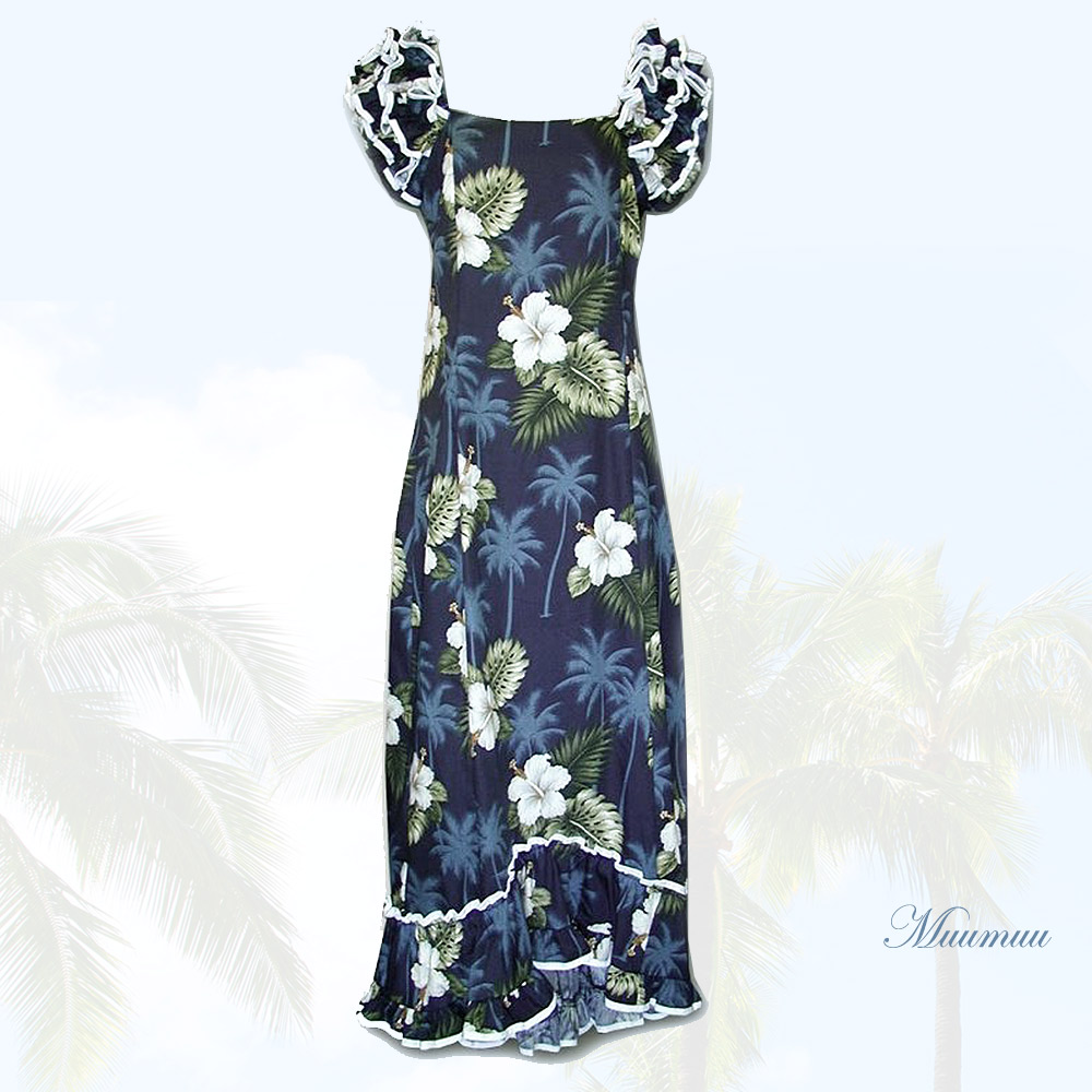 ムームー ハワイアン ロングドレス(レディース)ネイビー/Muumuu Navy(Women's) [APFT71]