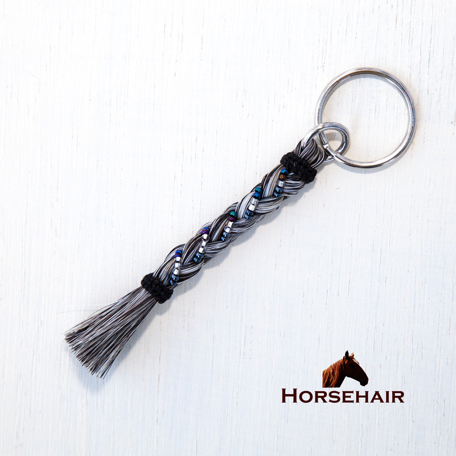 馬毛 ホースヘアー ウエスタン ビーズつき キーホルダー キーチェーン ストラップ(グレー)11cm〜12cm/Horse Hair Keychain w/Beads